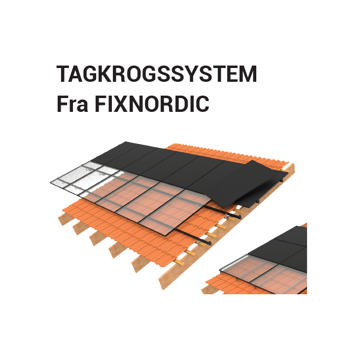 Fixnordics tagkrogssystem er et robust og fleksibelt montagesystem udviklet til professionel montering af solceller på skrå tage med tegl eller tegllignende tagbelægninger. Systemet er designet med høj fokus på både æstetik, justerbarhed og enkel installation.